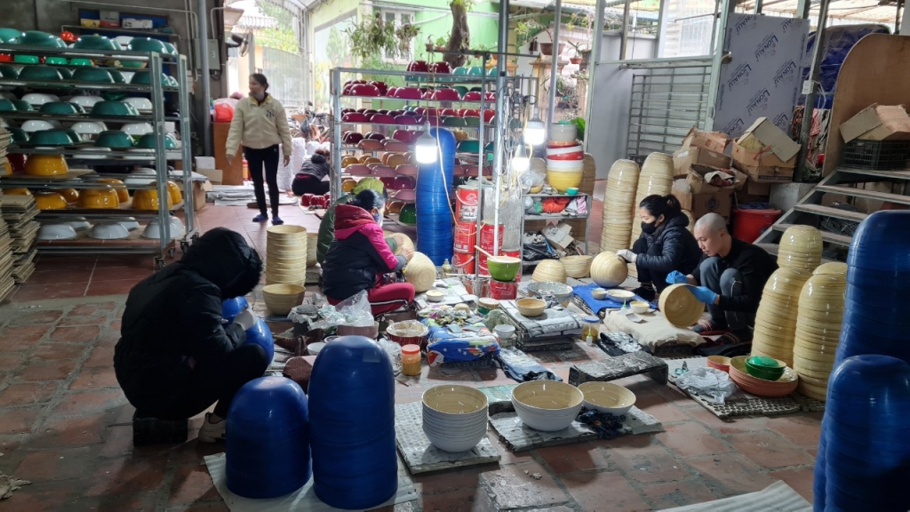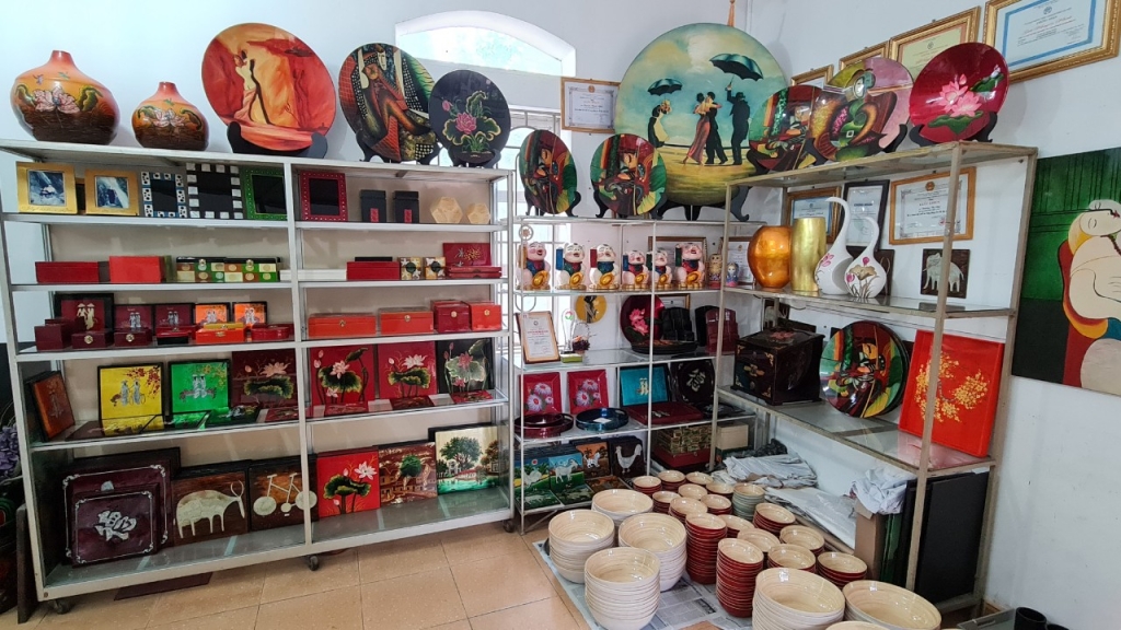 – Sản phẩm của cơ sở đa dạng mẫu mã, phong phú các thể loại như. Khay, đĩa, lọ, hộp, tranh.